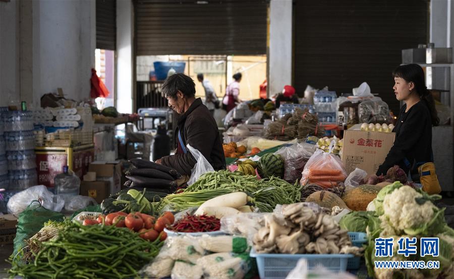 4月13日,云南省贡山县独龙江乡农贸市场里有各种从山外运来的新鲜蔬菜。新华社记者江文耀摄