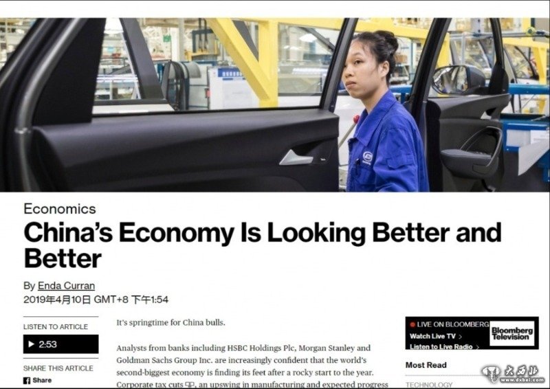 中国经济持续向好。图片来源:美国彭博社报道截图