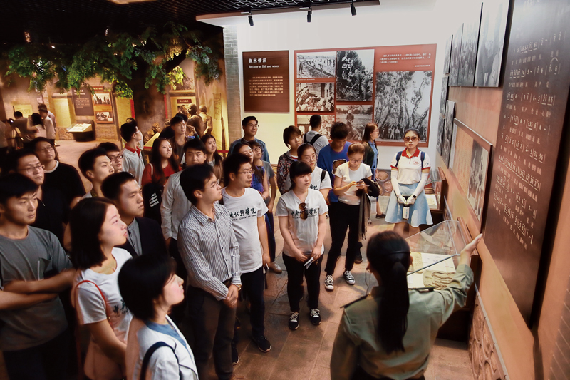 近年来,高校思政课涌现出一批有影响的教学方式,如专题式教学、互动式教学、实践性教学、多媒体教学,以及慕课、微课、微电影、文艺展演等,既展现了思政课的活力,也提升了教学效果。图为2017年5月,中国人民大学等十所高校组织学生前往河北省阜平县、正定县,参观晋察冀边区革命纪念馆、晋察冀军区司令部旧址和华北大学旧址,开展实践性教学。 中国人民大学供图