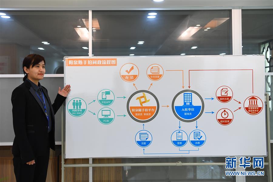4月15日,在阳泉市广播电视总台,工作人员介绍阳泉“随手拍”问政流程。 新华社记者 杨晨光 摄