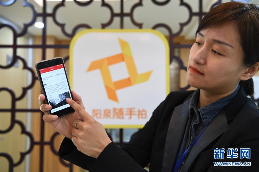 4月15日,在阳泉市广播电视总台,工作人员展示阳泉“随手拍”平台。 新华社记者 杨晨光 摄