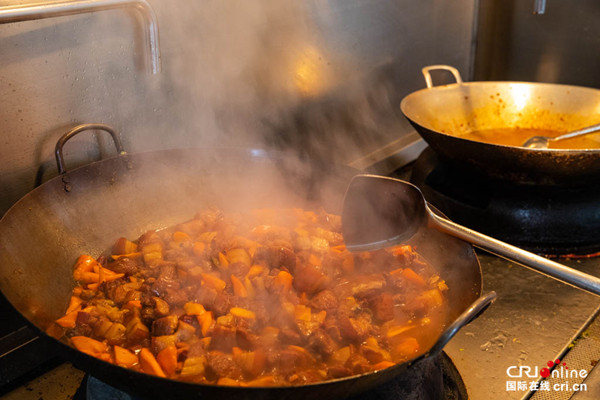 雅万高铁上的“幸福之家”-敬长勇师傅烹饪的红烧肉最受员工喜爱 (摄影:李树坤)