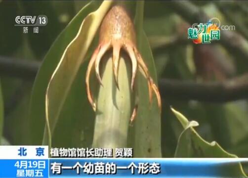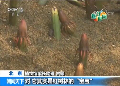 植物馆馆长助理 贺颖:对,它其实是红树林的“宝宝”,这种现象叫胎生现象,落到泥土中之后,它就可以生长出一个植株。