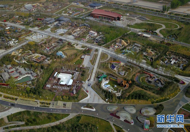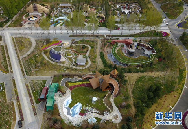 这是4月19日无人机拍摄的北京世园会园区国际展园。新华社记者 鞠焕宗 摄
