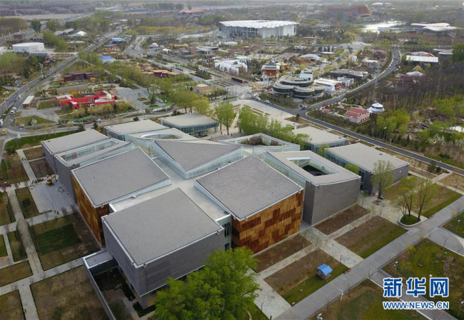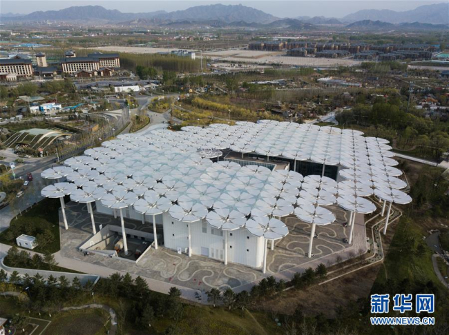 这是4月19日无人机拍摄的北京世园会园区生活体验馆。新华社记者 张晨霖 摄