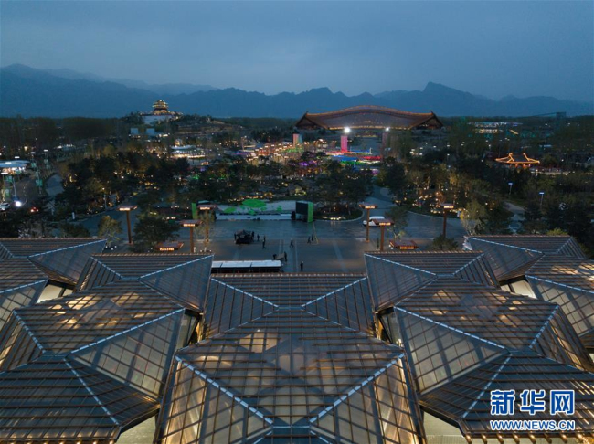 这是4月19日无人机拍摄的北京世园会园区夜景。新华社记者 鞠焕宗 摄