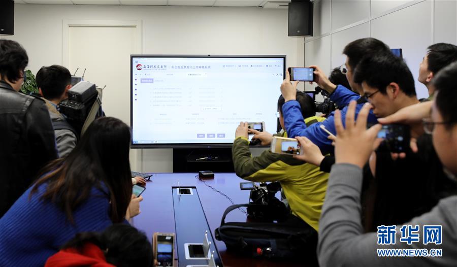 媒体记者在上海证券交易所的科创板上市审核中心会议室内观看上市审核系统操作流程演示(3月22日摄)。新华社记者方喆摄