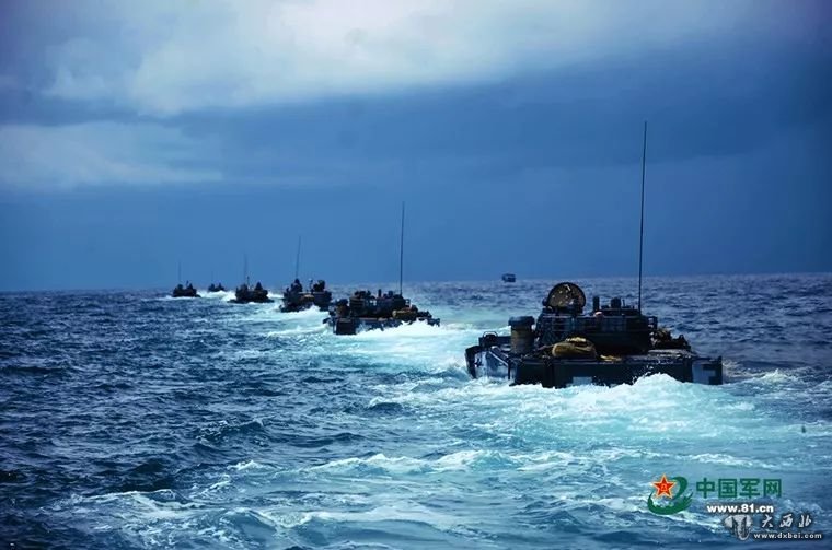 △海军陆战队某旅海练期间组织两栖装甲装备训练。