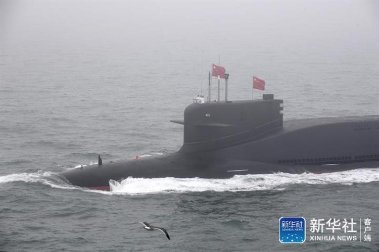 ↑这是4月23日拍摄的中国某新型核潜艇接受检阅。新华社记者李紫恒摄