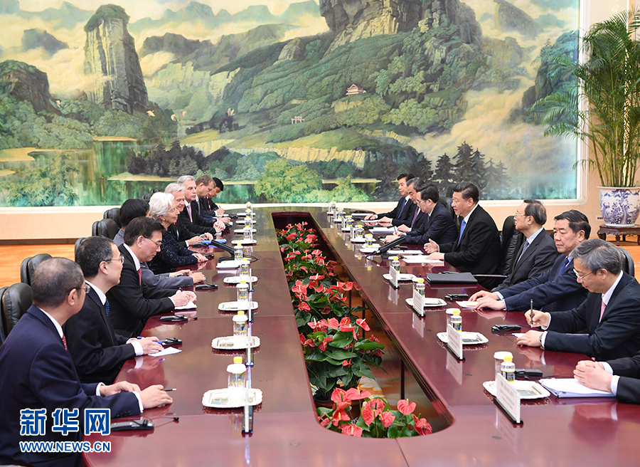 4月24日,国家主席习近平在北京人民大会堂会见国际货币基金组织总裁拉加德。 新华社记者 饶爱民 摄