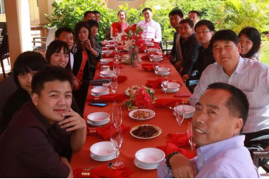 婚礼那天,餐馆里坐满了我的同事,老板特意换上了中国红的新桌布,妻子换上专门从国内带来的红旗袍,喜气的中国红让我们找到家乡的味道。