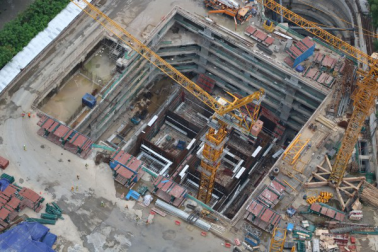 七层地下室“逆作法”施工,基坑最深处达到32米,地下室面积达到10万平方米,土方开挖达到30万立方米,总量可填满150个标准游泳池。在中国都罕见,在印尼更是绝无仅有。