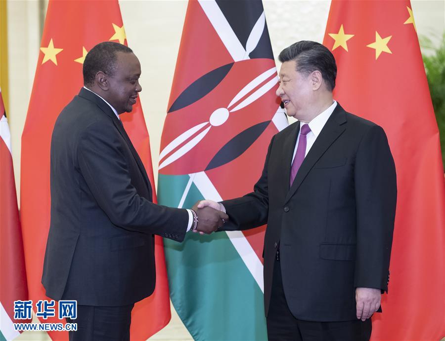 4月25日,国家主席习近平在北京人民大会堂会见肯尼亚总统肯雅塔。 新华社记者 鞠鹏 摄