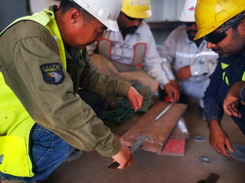 他的“洋徒弟们”都亲切地称呼他为“曹师傅”,虽然语言不通,但是平时也能开着玩笑,工作氛围非常愉快,这让艰苦的焊修工作变得轻松。