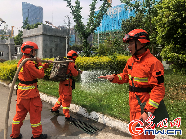 成都森林消防大队消防指战员进行消防救援实战演练 光明网记者/刘希尧摄