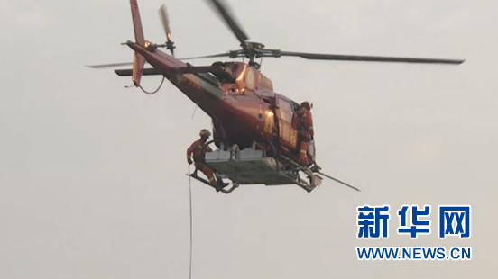 又20秒后,唐运德举起了右手,向直升机驾驶员示意,可以进行拉升。随即,直升机悬带消防员和伤者飞离险区……