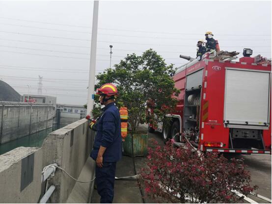 宜昌支队三峡坝区特勤大队消防员护航三峡船闸。中国网信网 杨曦 摄