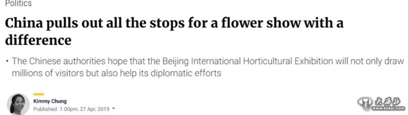 香港《南华早报》网站4月27日报道称,本届世园会的主题是“绿色生活美丽家园”,传递出与政府大力治理污染行动保持同步的强烈环保信息。