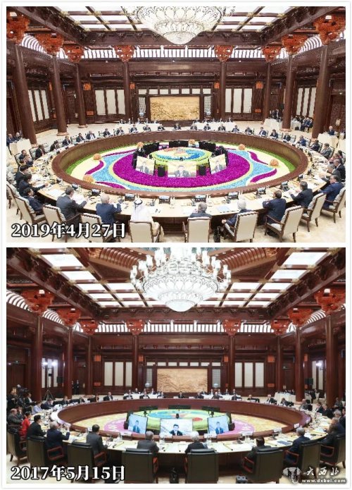 两年前,首届“一带一路”国际合作高峰论坛圆桌峰会,就是在雁栖湖国际会议中心二层集贤厅举行的。还是这张大圆桌,但这次不同的是,领导人所用座椅比首届时窄一些,座椅间距也变小了。原因是,参会领导人从33位增加到40位。