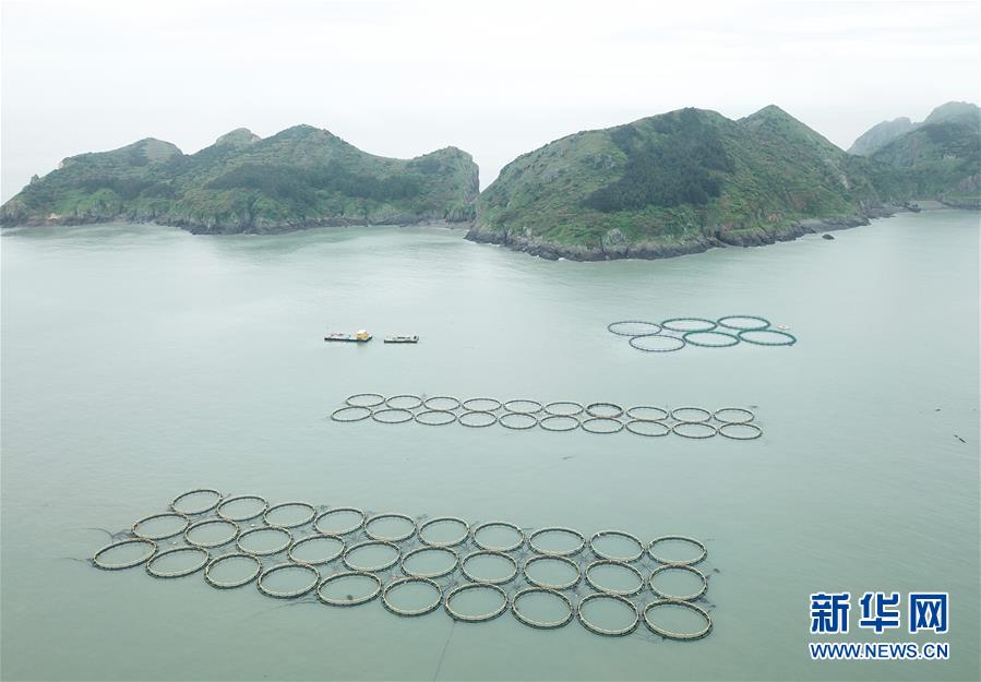 大陈岛附近海面上,铜合金网“编织”的巨型海上养殖平台十分壮观。