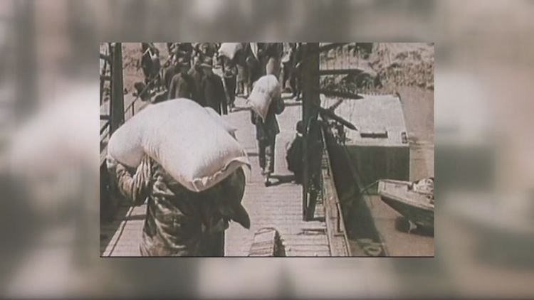 解放后的反封锁斗争,工人阶级仍是主力军。当时码头装卸全靠肩挑手扛,为恢复生产,工人们从原先每个班档挑40个肩头,提高到74个。