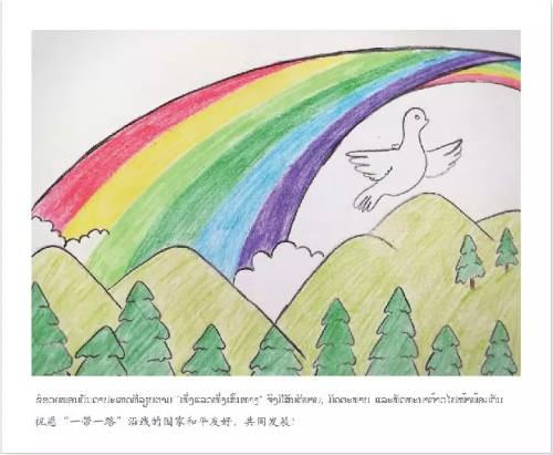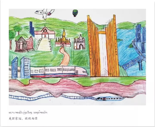 ↑中老友好农冰村小学的学生画作(中共中央对外联络部提供)