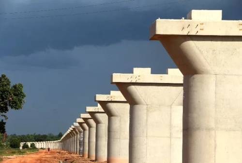 ↑2018年6月14日的老挝万象楠科内河特大桥桥墩。墩身浇筑完成标志着中老铁路全线最长桥梁主体工程顺利完工。 新华社发
