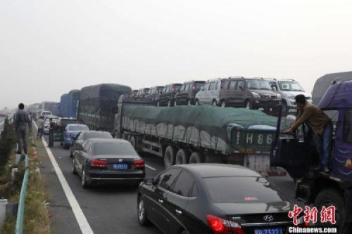 ↑资料图:高速出现的拥堵。中新社发 王中举 摄