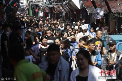 ↑资料图:去年中秋山东济南芙蓉街老街巷景区的人海景观。 图片来源:视觉中国