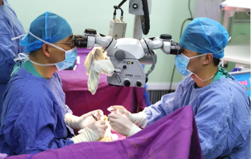 接血管,是最常见的外科手术。在显微镜下将直径0.2毫米的手部血管进行连接、缝合,难度不亚于给蚂蚁穿鞋,这却是手外科/足踝外科医生曹松华的日常工作。