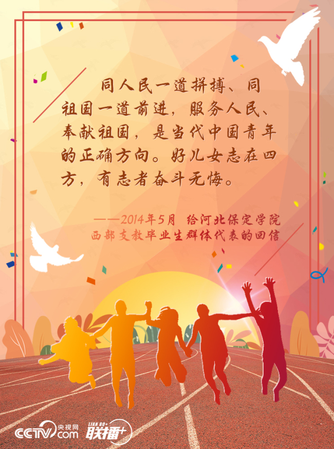 “100年来,中国青年满怀对祖国和人民的赤子之心,积极投身党领导的革命、建设、改革伟大事业,为人民战斗、为祖国献身、为幸福生活奋斗”