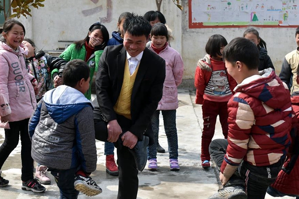 黑虎庙小学位于南阳市的深山区,距离县城70多公里。想走出大山,要沿着山路走上10多个小时。路没修好时,我就挑着扁担,把学生的课本、作业、文具挑进大山。