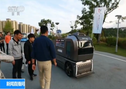 央视记者林舟:这是一台无人售卖车。平时它就是在公园里到处穿行。如果你口渴了,想要买点东西,就可以冲它挥挥手,或者是站在它的面前,那它就会停下来。接着你就可以利用手机进行购买了。