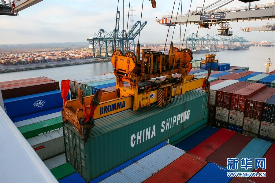 荷兰鹿特丹港和中国广州港5月7日缔结为友好港口。这两个同为21世纪海上丝绸之路上的世界级航运枢纽港将在绿色港口、智慧港口等方面开展深度合作。在8日至9日广州举行的2019年世界港口大会上,“开放合作、共享未来”的主题词得到与会人士的广泛响应。这是2019年2月5日,轨道式起重机在比利时安特卫普港向集装箱船“中远海运天秤座”号装载集装箱。新华社记者张铖摄