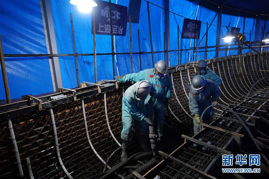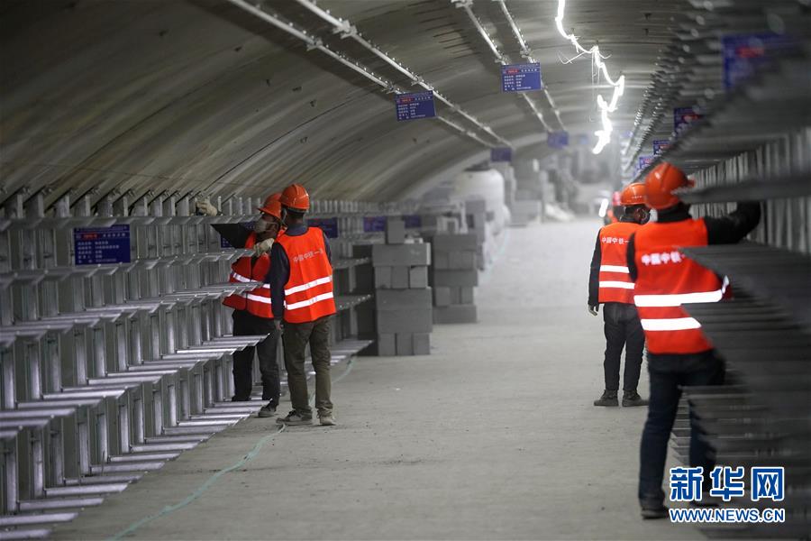 这是施工人员在延庆赛区综合管廊施工现场(5月8日摄)。 新华社记者鞠焕宗摄