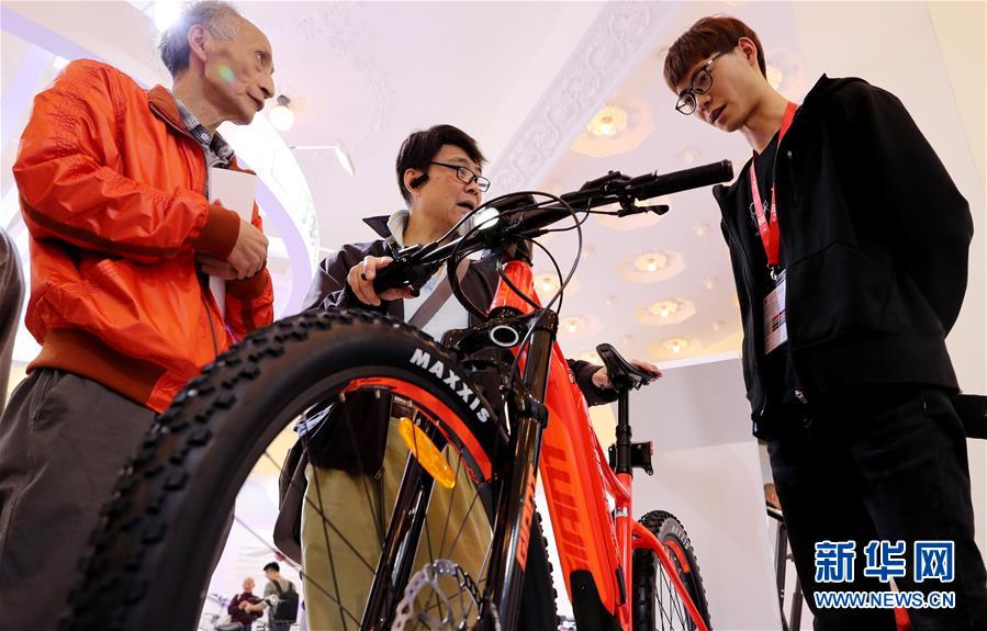 5月10日,观众参观中国自行车协会展台。新华社记者 方喆 摄