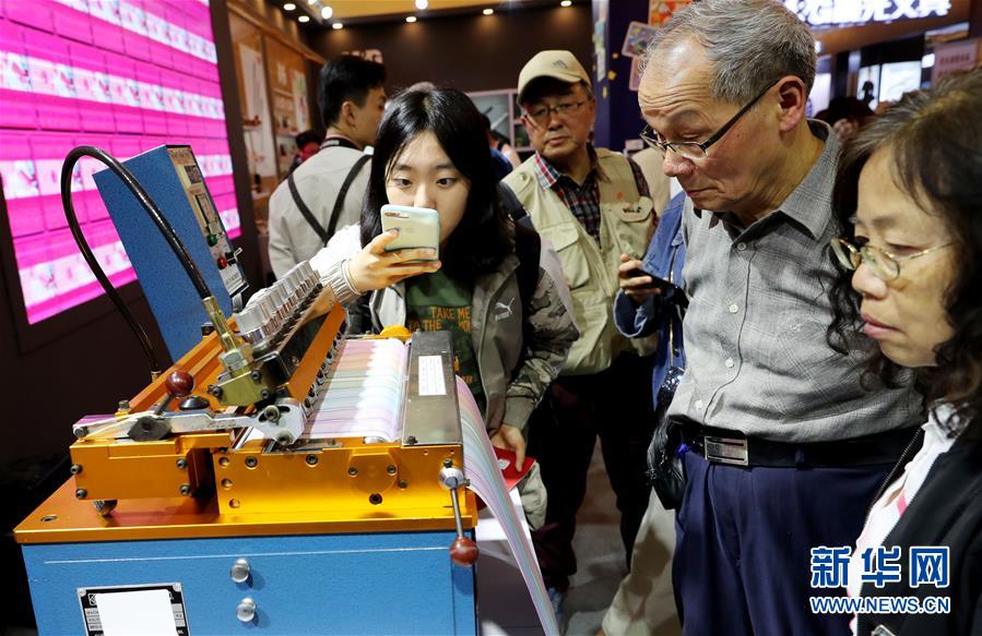 5月10日,观众参观一台用于圆珠笔质量检测的划圆书写机。新华社记者 方喆 摄