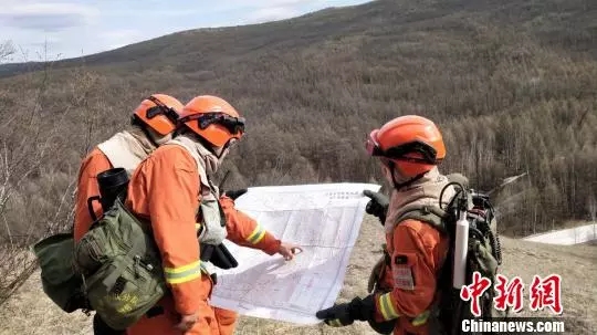 图为奇乾中队消防指战员查看地形。张林虎摄