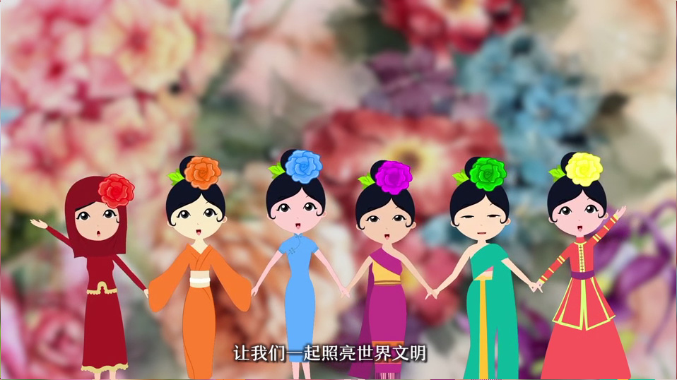 咦,是谁在聊天?原来是来自亚洲的六朵小花。多彩的泰国,浪漫的印度,温柔的日本,好客的哈萨克斯坦,活泼的伊朗,包容的中国。
