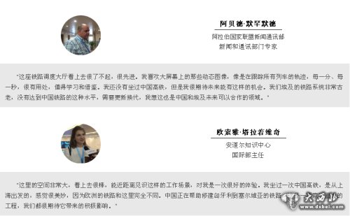 随后,外宾代表观看了《中国铁路》宣传片,并听取了铁路总公司科技和信息化部、调度部负责人的介绍,对中国高铁发展概括和技术创新主要情况,以及调度指挥中心主要功能和中国铁路运输调度指挥主要情况有了进一步了解。