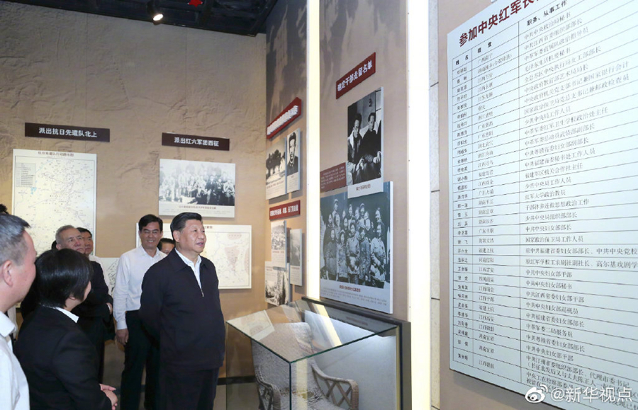 20日下午,习近平总书记在江西省于都县中央红军长征出发纪念馆,亲切会见了于都县红军后代、革命烈士家属代表。他动情地说,建立中华人民共和国,这是无数革命先烈们用鲜血换来的。当年党和红军在长征途中一次次绝境重生,凭的是革命理想高于天,最后创造了难以置信的奇迹。现在国家发展了,人民生活变好了,我们要饮水思源,不要忘了革命先烈,不要忘了党的初心和使命,不要忘了我们的革命理想、革命宗旨,不要忘了我们中央苏区、革命老区的父老乡亲们。(文字:张晓松 摄影:鞠鹏、谢环驰)