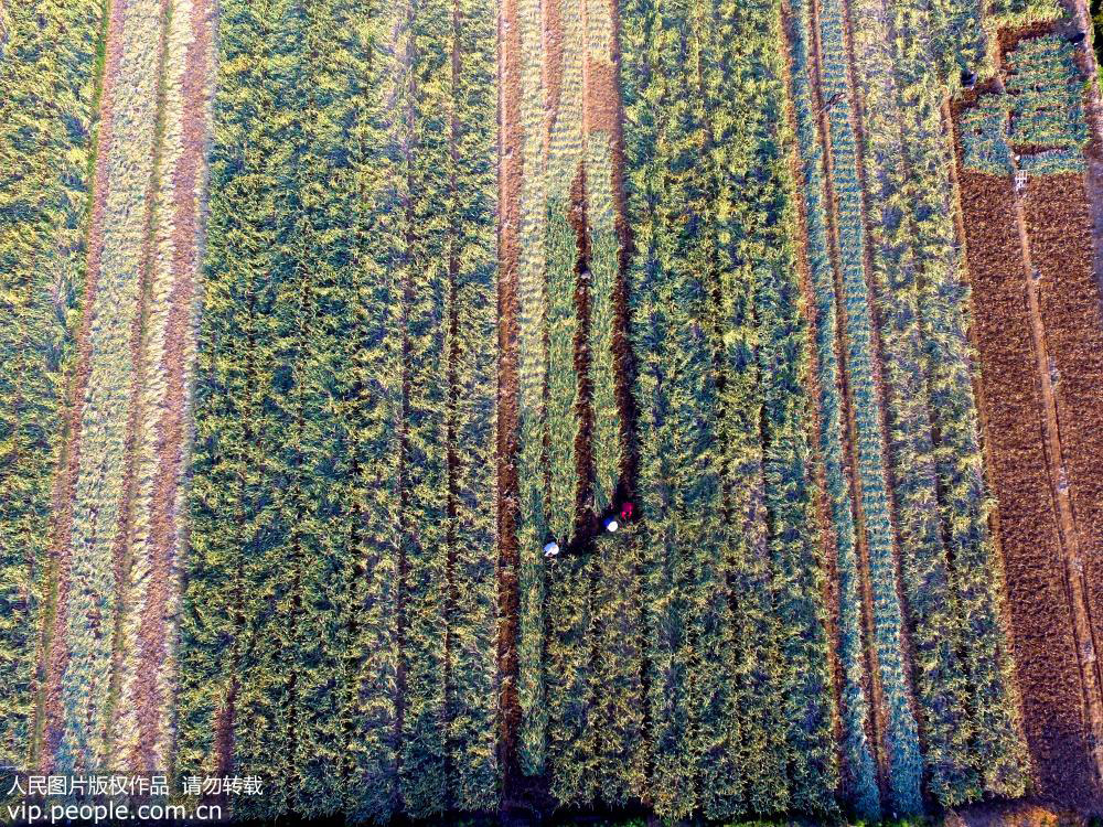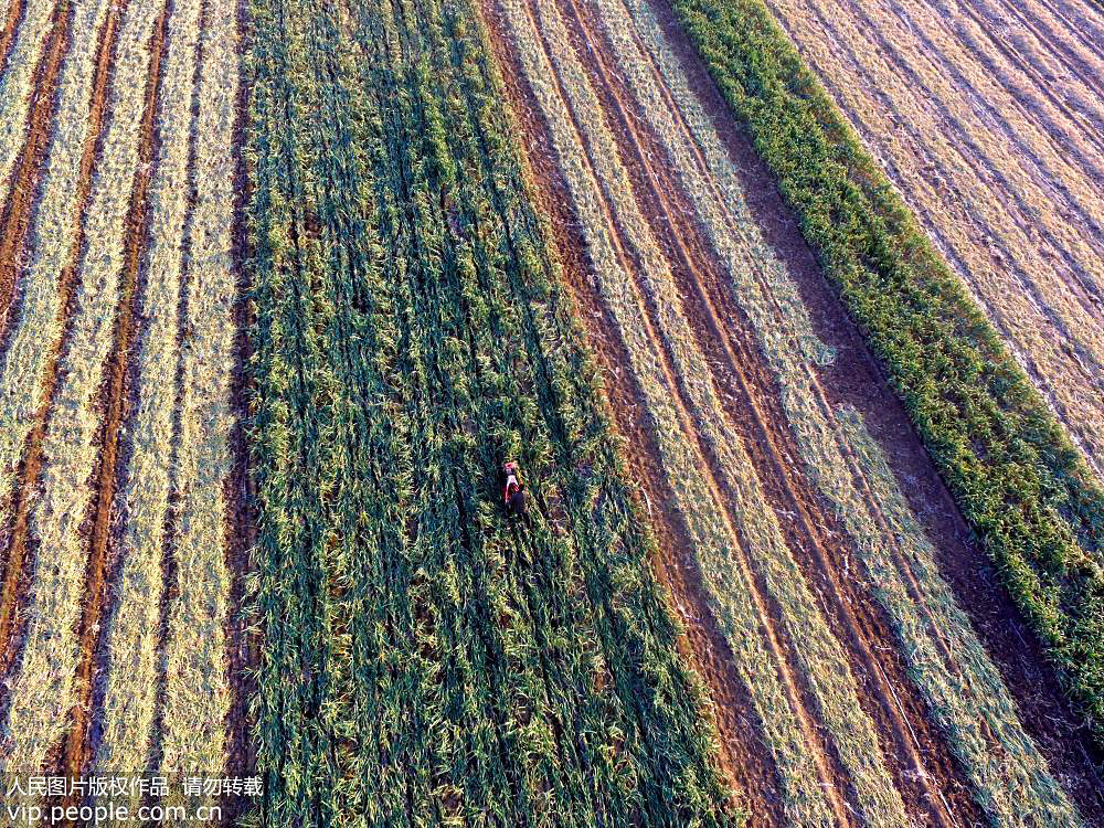 2019年5月21日是二十四节气中的小满,山东临沂农民抓时令忙生产,田间地头一派劳作忙的景象。武纪全/人民图片