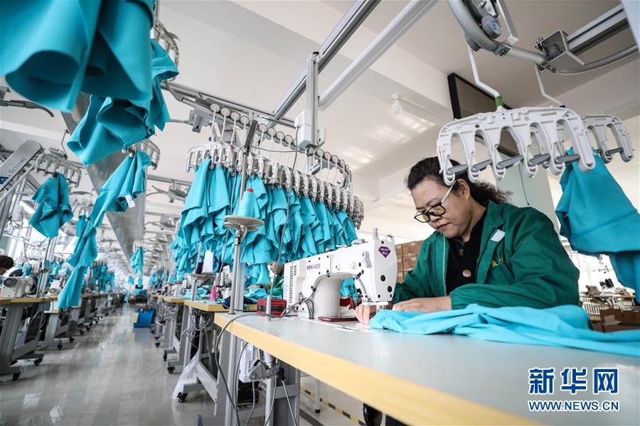 工人在辽宁葫芦岛益丰(集团)运动服饰有限公司生产车间加工泳衣(3月6日摄)。新华社记者潘昱龙摄