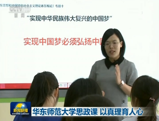 央视网消息(新闻联播):华东师范大学创新思政课教学方法,让理论和实践相结合,让名师专家进课堂,思想政治教育的亲和力、感染力大大增强。