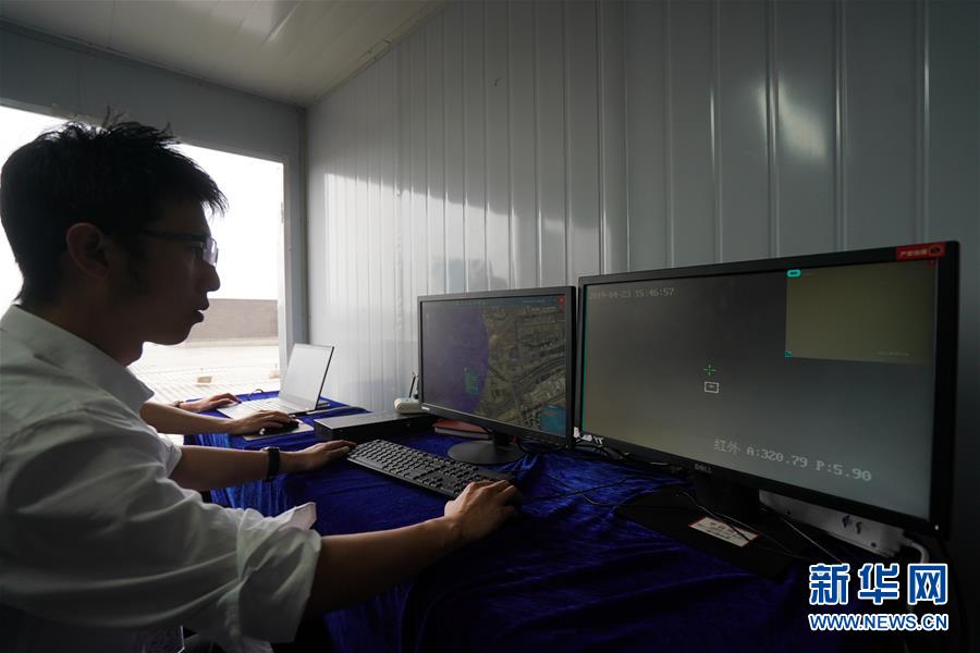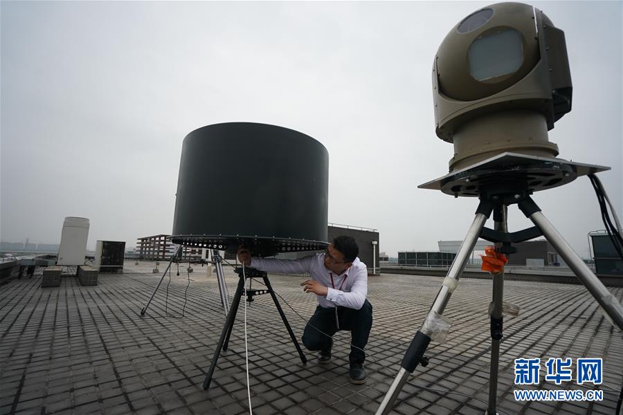 在位于南京的中国电科第14研究所,科研人员在利用“蜘蛛网反无人机系统”捕捉无人机踪迹(4月23日摄)。 新华社记者季春鹏摄