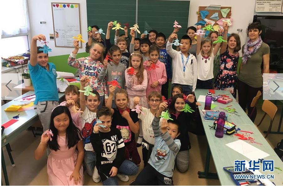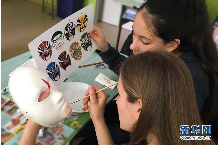 在匈牙利首都布达佩斯,匈中双语学校的学生在中国文化课上体验画脸谱(资料照片,2019年4月30日摄)。位于匈牙利首都布达佩斯第15区的匈中双语学校是中东欧唯一同时使用当地语言和中文教学的全日制公立学校。从以中国学生为主到匈牙利学生占绝大多数,匈中双语学校创立十五年来的学生结构变化,显示出中文和中国在匈牙利日益受到重视。新华社发(匈中双语学校供图)