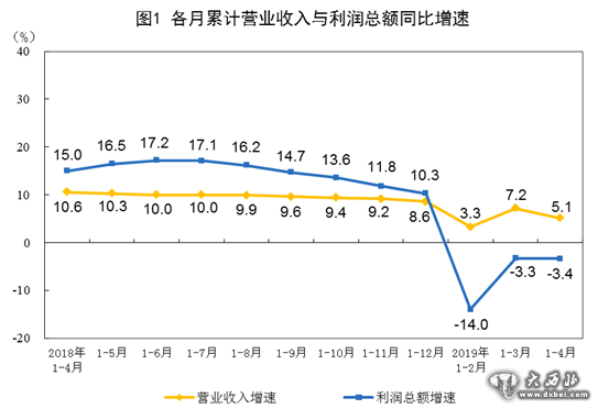 4月份,规模以上工业企业实现利润总额5153.9亿元,同比下降3.7%,3月份为同比增长13.9%。