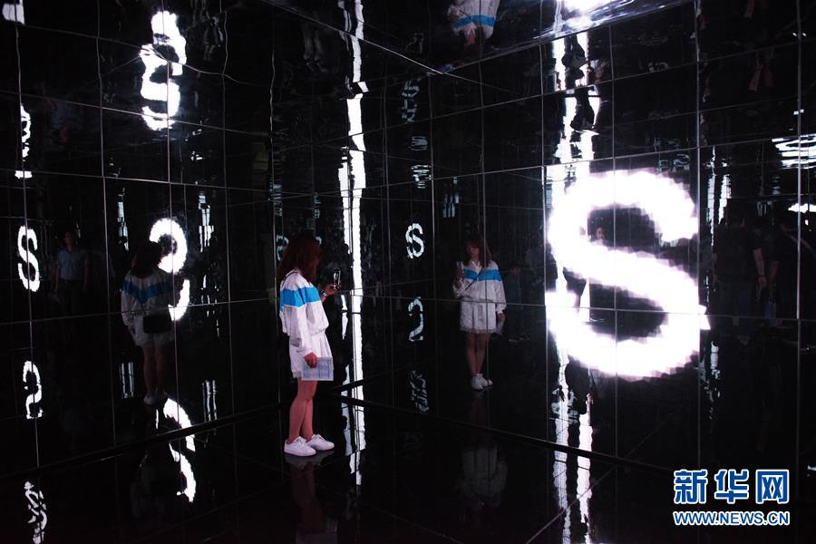 5月27日,观众在数博会“追梦·未来”数字艺术特展上体验艺术作品《棱镜》。
