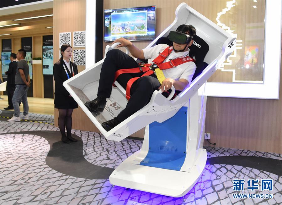 5月28日,观众在中国国际服务贸易交易会主会场使用虚拟现实设备观看全景展示视频。任超 摄
