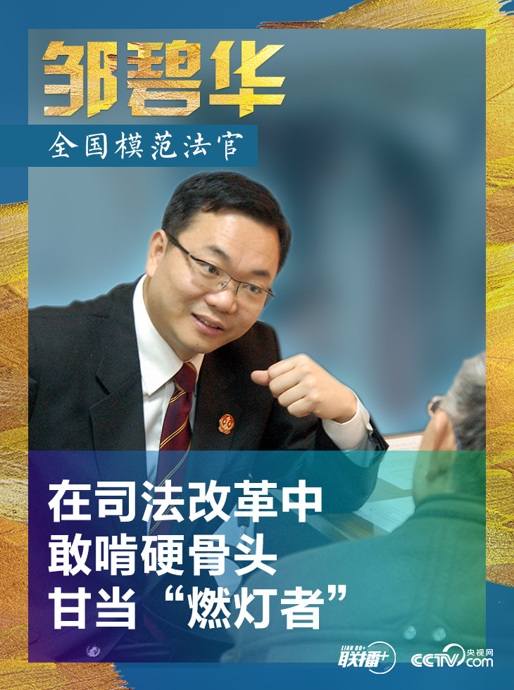 邹碧华同志是新时期公正为民的好法官、敢于担当的好干部。他崇法尚德,践行党的宗旨、捍卫公平正义,特别是在司法改革中,敢啃硬骨头,甘当“燃灯者”,生动诠释了一名共产党员对党和人民事业的忠诚。广大党员干部特别是政法干部要以邹碧华同志为榜样,在全面深化改革、全面依法治国的征程中,坚定理想信念,坚守法治精神,忠诚敬业、锐意进取、勇于创新、乐于奉献,努力作出无愧于时代、无愧于人民、无愧于历史的业绩。